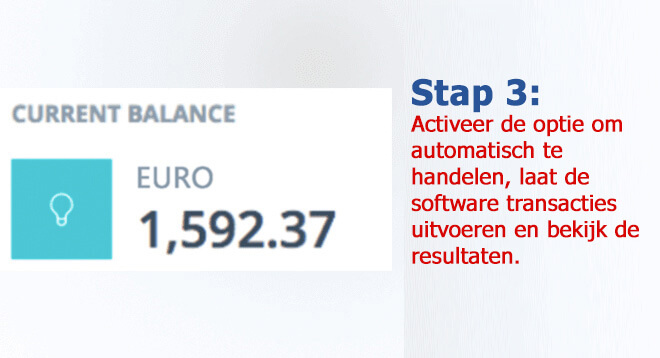 Toen ik het geld op mijn account had gestort, ben ik naar het gedeelte "automatisch handelen" van de software gegaan en het bedrag om mee te handelen op de aanbevolen € 50 ingesteld. De software begon in hoog tempo transacties uit te voeren en in het begin was ik nogal zenuwachtig, maar ik besloot om het systeem zijn werk te laten doen.